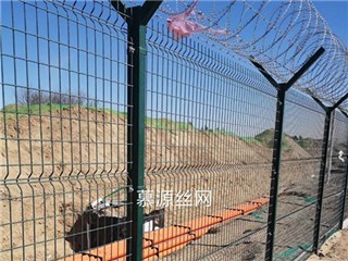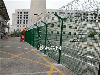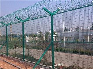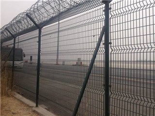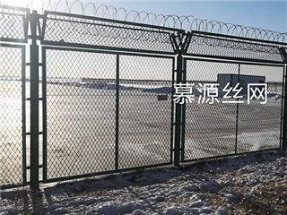 機場圍界是由Y型立柱、加強型焊接網片、安全防盜連接件和熱鍍鋅刀刺滾籠組成安全防禦性級別很高的隔離網產品。機場圍界表麵采用電鍍、熱鍍、噴塑或浸塑等防腐形式,具有良好的抗腐蝕、抗曬、抗老化的優點。其造型美觀,既安全作用又有美觀作用。被廣泛應用在機場、監獄、軍事基地等高安全場所。