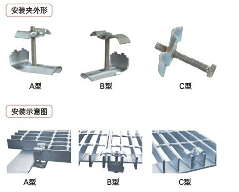 熱鍍鋅鋼格板安裝夾是一種標準件,比較容易采購到。采用鋼格板安裝夾具有不破壞鍍鋅層和拆卸方便的優點。每塊板至少應采用四個安裝夾,對較大的板塊最好在可利用的支承物上多安裝幾個。