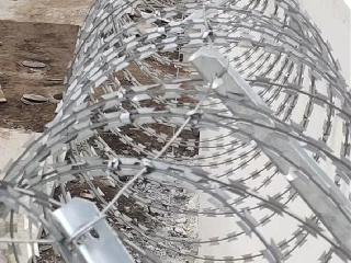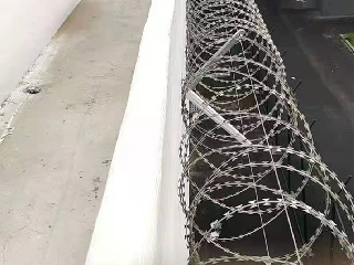 (4)支架在圍牆上的固定方法一般為底盤打膨脹螺絲固定。固定好後,方可進行蛇腹形刀刺網安裝。